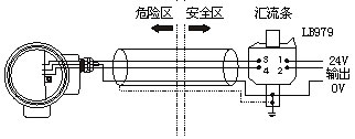 ·傳感器與安全柵本安端之間的連接電纜為三芯屏蔽電纜(電纜必須有絕緣護(hù)套)芯線截面0.5mm2。其屏蔽層在安全場(chǎng)所單端接地,其電纜布線盡可能排除電磁干擾的影響并使電纜分布參數(shù)控制在0.05F之內(nèi);