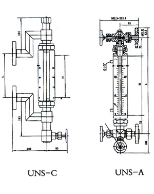 UNS(UGS)系列彩色石英管液位計(jì)(以下簡(jiǎn)稱彩色液位計(jì))是采用國(guó)內(nèi)外新高科技研制而成,它是普通玻璃板液位計(jì)更新?lián)Q代產(chǎn)品,它廣泛用于石油、化工、電力、冶金等行業(yè)各種透明液體容器和鍋爐上,如,水、汽油、液化氣、液氨、丙烷、丙烯,酸等油品和化工原料的液位測(cè)量,同時(shí)適用于二種不同介質(zhì)密度的界面測(cè)量。彩色液位計(jì)安裝在各種容器及鍋爐上,直接觀測(cè)到液位變化,液相顯示呈現(xiàn)綠色,氣相顯示呈現(xiàn)紅色,界面測(cè)量呈三色分界面。液、氣顯示反差很大,在遠(yuǎn)距離觀察、夜間巡視顯明清晰。它成功地克服了普通板式液位基本中,密封面積打、易滲漏,顯示不清晰,在很近距離難易判斷的缺點(diǎn)。它是目前國(guó)內(nèi)外理想的直讀式液位計(jì)。