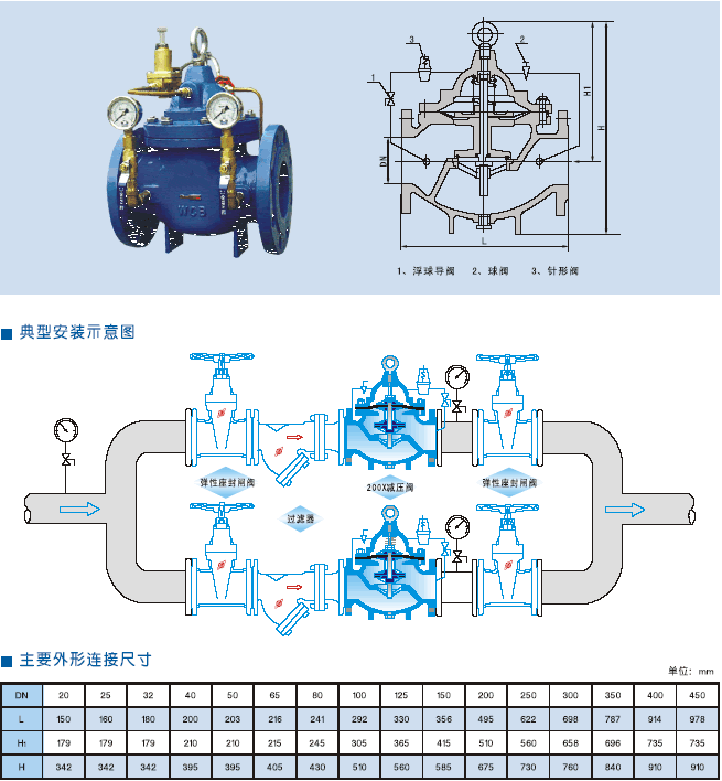 200X減壓閥是一種利用介質(zhì)自身能量了調(diào)節(jié)與控制管路壓力的智能型閥門。用于生活給水、消防給水及其他工業(yè)給水系統(tǒng),通過調(diào)節(jié)減壓導(dǎo)閥,即可調(diào)節(jié)主閥的出口壓力。出口壓力不因進口壓力、進口流量的變化而變化,安全可靠地將出口壓力維持在設(shè)定直上,并可根據(jù)需要調(diào)節(jié)設(shè)定直以達到減壓目的。該閥減壓精確,性能穩(wěn)定、安全可靠、安裝調(diào)節(jié)方便,使用壽命長。