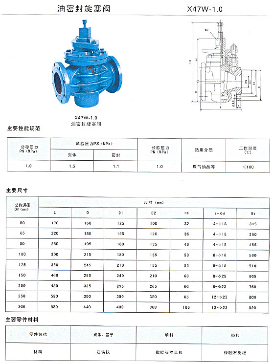 X47W油密封旋塞閥在閥體和旋塞上有油槽,在旋轉(zhuǎn)柄上可注入密封脂的止回閥,靠注入密封脂加強密封性能。X47W油密封旋塞閥的閥體和閥蓋連接采用螺栓,閥體和閥蓋間有調(diào)整墊,該調(diào)整墊既要保證閥體與閥蓋的密封,又要保證旋塞和閥體間密封性能。X47W油密封旋塞閥適用于石油、天然氣等管道。