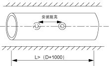 將管道參數(shù)輸入主機(jī),計算出安裝距離(由于采用插入式探頭,建議均使用直接測量方式,即Z安裝方式)定出兩個探頭的位置,安裝距離為兩個探頭的中心距。