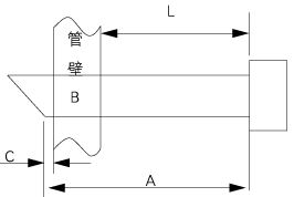 探頭的長度A和管壁厚度B已知,探頭留在管道外側(cè)長度L也可測量,只需L=A-B,并使c=0即可。 |