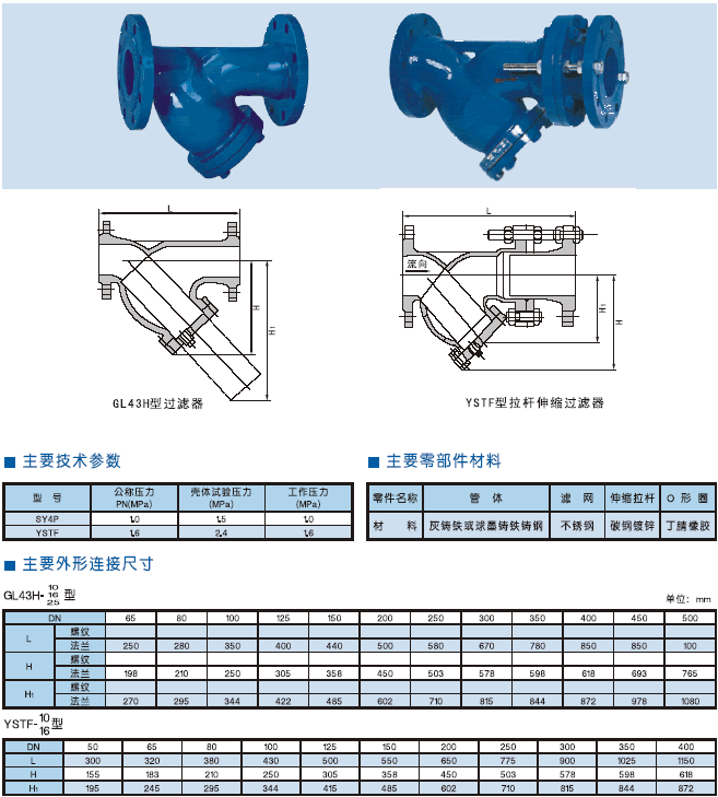 Y型過濾器、Y型伸縮過濾器是使用水力控制閥及精密的易堵塞的機械產(chǎn)品所必須具有的過濾設(shè)備。通常安裝在水力控制閥等設(shè)備的進口端,防止顆粒性雜質(zhì)進入通道,造成阻塞,使閥門或其他設(shè)備失靈而不能正常使用。Y型過濾器結(jié)構(gòu)簡單、流阻小,可在線排除污物而不需拆除。Y型拉桿伸縮過濾器還具有安裝長度可調(diào),裝拆方便的特點?筛鶕(jù)需要設(shè)置濾網(wǎng)數(shù)目,通常范圍:水18-30目、蒸汽40-100目、油100-180目。