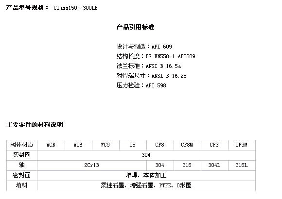 我廠引進(jìn)能夠國外技術(shù)的基礎(chǔ)上,采用精密的J形彈性密封圈和三偏心多層次金屬硬密封結(jié)構(gòu),被廣泛用于介質(zhì)溫度≤425℃的治金 、電力、石油化工、以及給排水和市政建設(shè)等工業(yè)管道上,作調(diào)節(jié)流量和載斷流體使用。