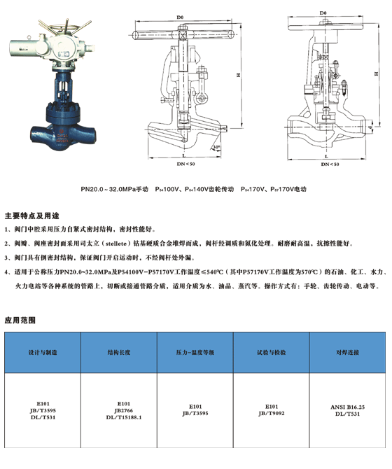 2、閥瓣、閥座的密封面采用司太立鈷基硬質(zhì)合金堆焊而成,耐磨、耐高溫,抗擦傷性能好、使用壽命長(zhǎng)