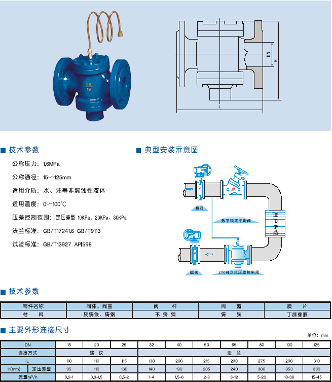 ZYC自立式壓差控制閥是一種利用介質(zhì)自身的壓力變化進(jìn)行自我控制,從而保持流經(jīng)該被控系統(tǒng)介質(zhì)壓差不變的閥門(mén)。適用于供暖方式用雙管系統(tǒng)的壓差控制,從而保持流經(jīng)該被控系統(tǒng)介質(zhì)壓差不變的閥門(mén)。適用于供暖方式采用雙管系統(tǒng)的壓差控制。保證系統(tǒng)壓差基本不變,降低噪音,平衡阻力,消除熱網(wǎng)和水力失調(diào)。