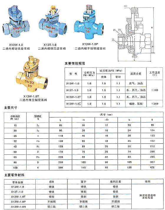 X13W二通內(nèi)螺鑄鐵旋塞閥