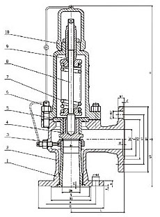 A41H型適用于工作溫度≤300℃的石油氣、空氣、水等介質(zhì)的設(shè)備或管路上。A41Y-P/R型適用于工作溫度≤200℃有腐蝕性介質(zhì)的設(shè)備或管路上,作為超壓保護裝置。連接法蘭標(biāo)準按JB/T……94/系列1。