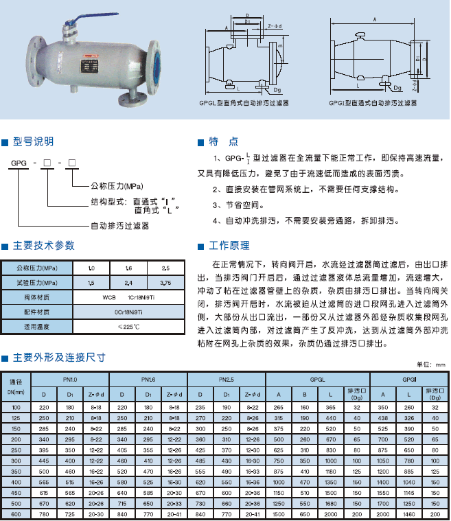 GPG型過濾器是一個(gè)能使用低質(zhì)水進(jìn)行工業(yè)冷卻的過濾器;同時(shí)也可用于其他需要過濾的工藝過程,它具有反向沖洗排除雜質(zhì)功能,一般安裝在換熱器其他執(zhí)行機(jī)構(gòu)的前面,定期沖洗排除雜質(zhì)。
