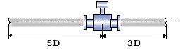 ·流量計前方少要有5* D(D為流量計內(nèi)徑)長度的直管段,后方少要有3* D(D為流量計內(nèi)徑)長度的直管段; |