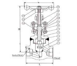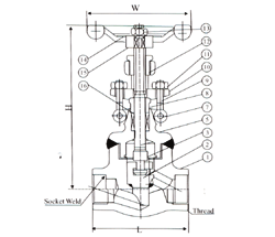 截止閥的設(shè)計與制造符合 APl602,BS53 52和ASME B16.34。檢驗與測試按APl598,標記按MSS-SP-25。